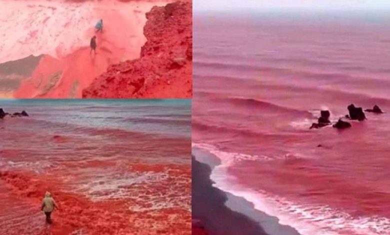 اس دل کش نظارے نے دیکھنے والوں کے دل موہ لیے، ماہرین کا کہنا ہے کہ آئرن آکسائیڈ سے بھر پور مٹی کے سمندر میں جانے سے سمندر کا پانی سرخ ہوا۔