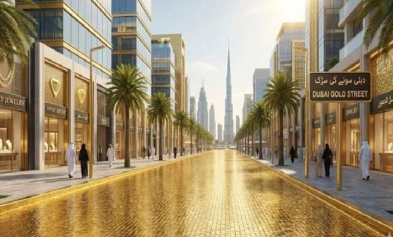 دبئی نے دنیا کی پہلی سونے کی سڑک بنانے کا اعلان کردیا۔ دبئی حکومت نے نئے گولڈ ڈسٹرکٹ کا باقاعدہ افتتاح کردیا جس کے بارے میں بتایا گیا ہے کہ یہاں دنیا کی پہلی گولڈ اسٹریٹ جلد شروع کی جائے گی۔